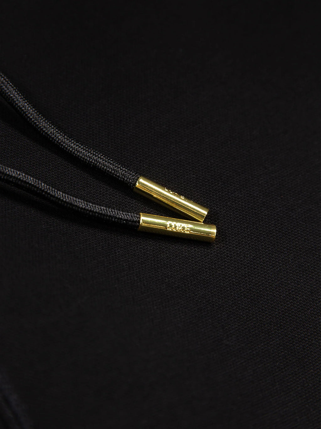 - LUKE text gold eyelet and cord ends