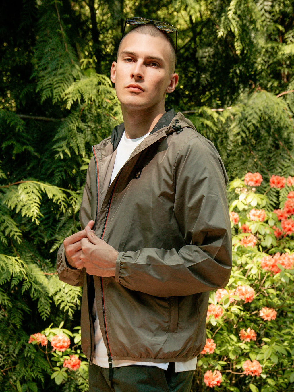 LUKE has you ready - whatever the weather - with this hooded shower proof jacket. It is crafted from a lightweight nylon with a breathable mesh lining and is fitted with a front zip closure which is detailed with striped zip tape. It features two essential lower zip pockets and is complete with the brand’s iconic lion head woven badge on the left chest.