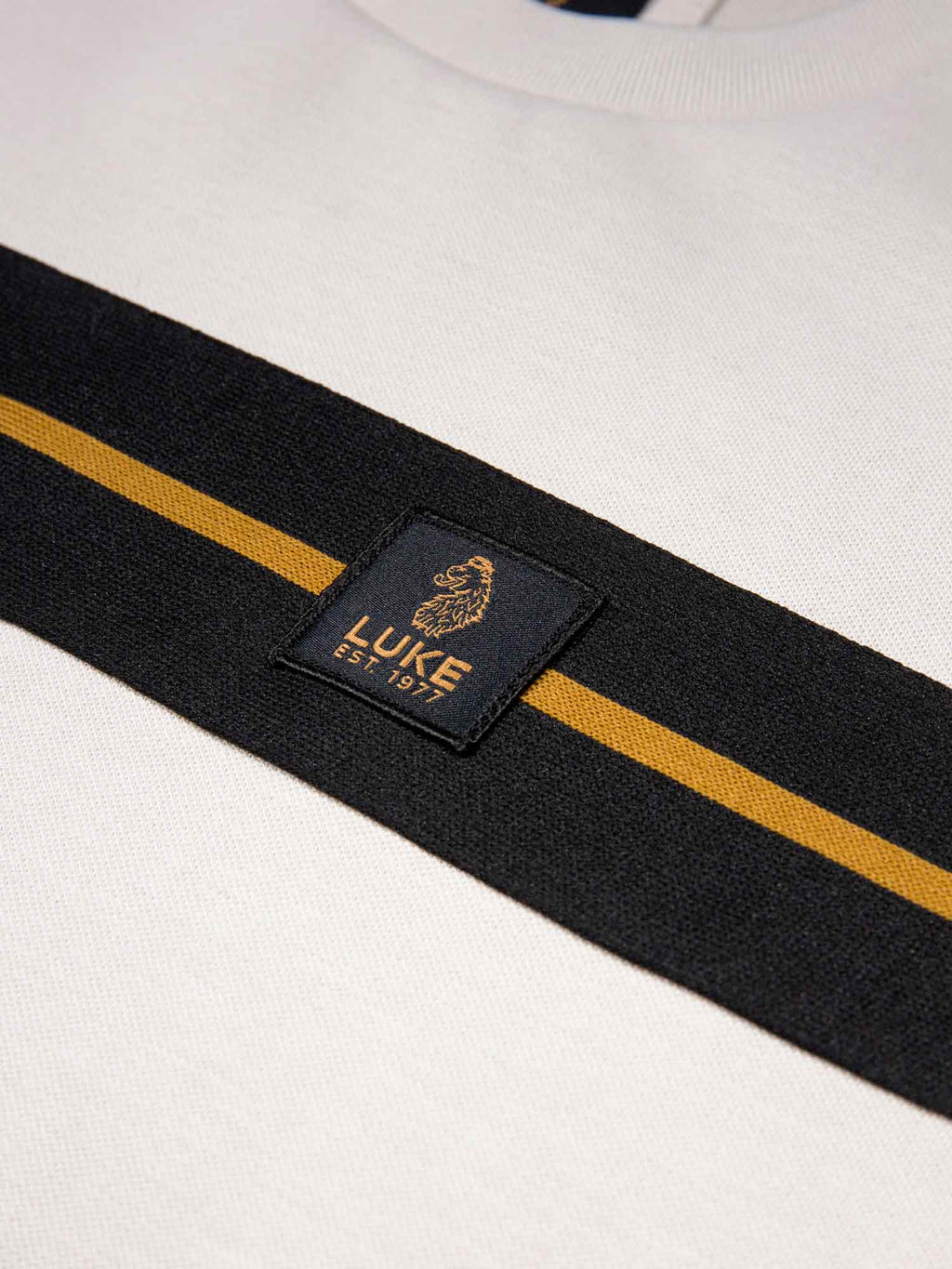 This stylish crew neck tee from LUKE is constructed from a premium, heavy weight Intertech Pique fabric and cut to a regular fit. It features a comfortable rib neck, and the chest is detailed with our classic striped tape. The look is then complete with the LUKE EST. 1977 woven badge on the left chest