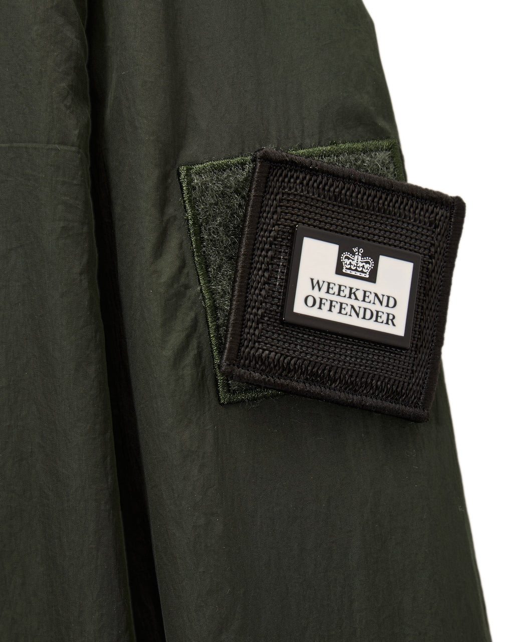 This WO staple fabric is made from lightweight high density woven 100% Nylon parachute style fabric with misted lightly reflective surface. Treated with an additional DWR (Durable Water Repellent) coating.