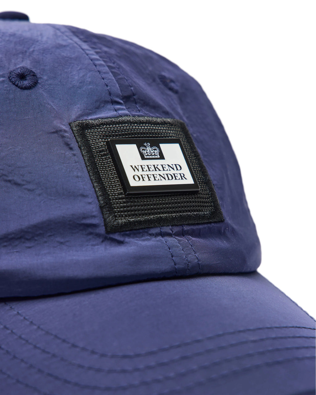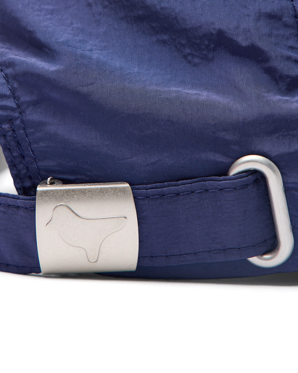 WO baseball cap made from lightweight high density woven 100% Nylon parachute style fabric with misted lightly reflective surface. Treated with an additional DWR (Durable Water Repellent) coating.