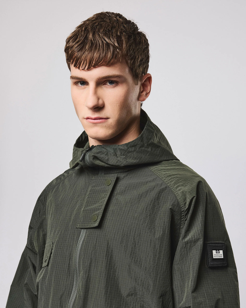 ▪ Flap with concealed welt pocket and WO branded press studs to chest